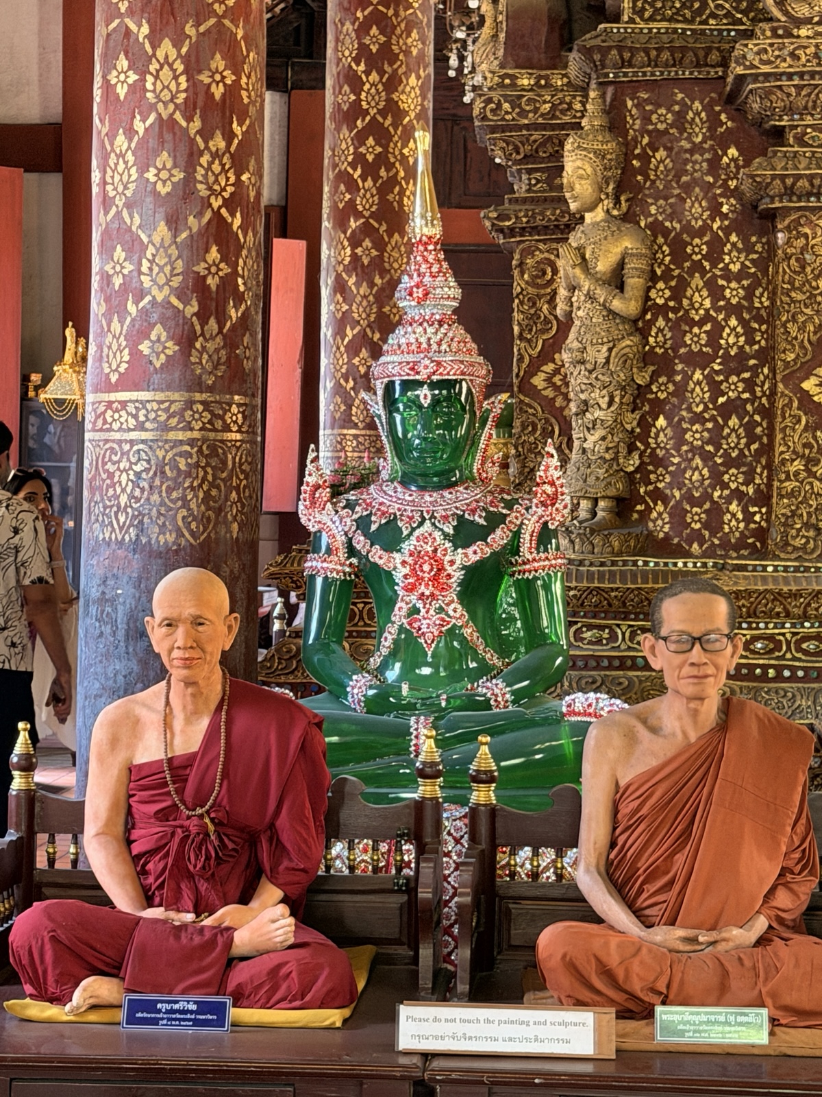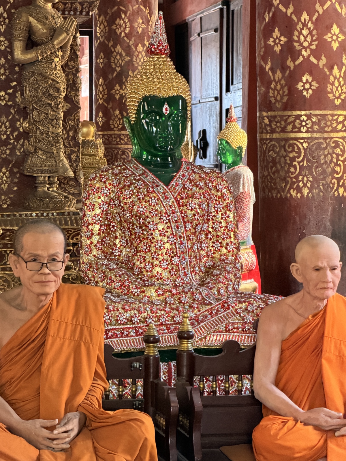 Sharon got some good pictures of the cool emerald Buddhas in there, along with some realistic-looking statues of monks.