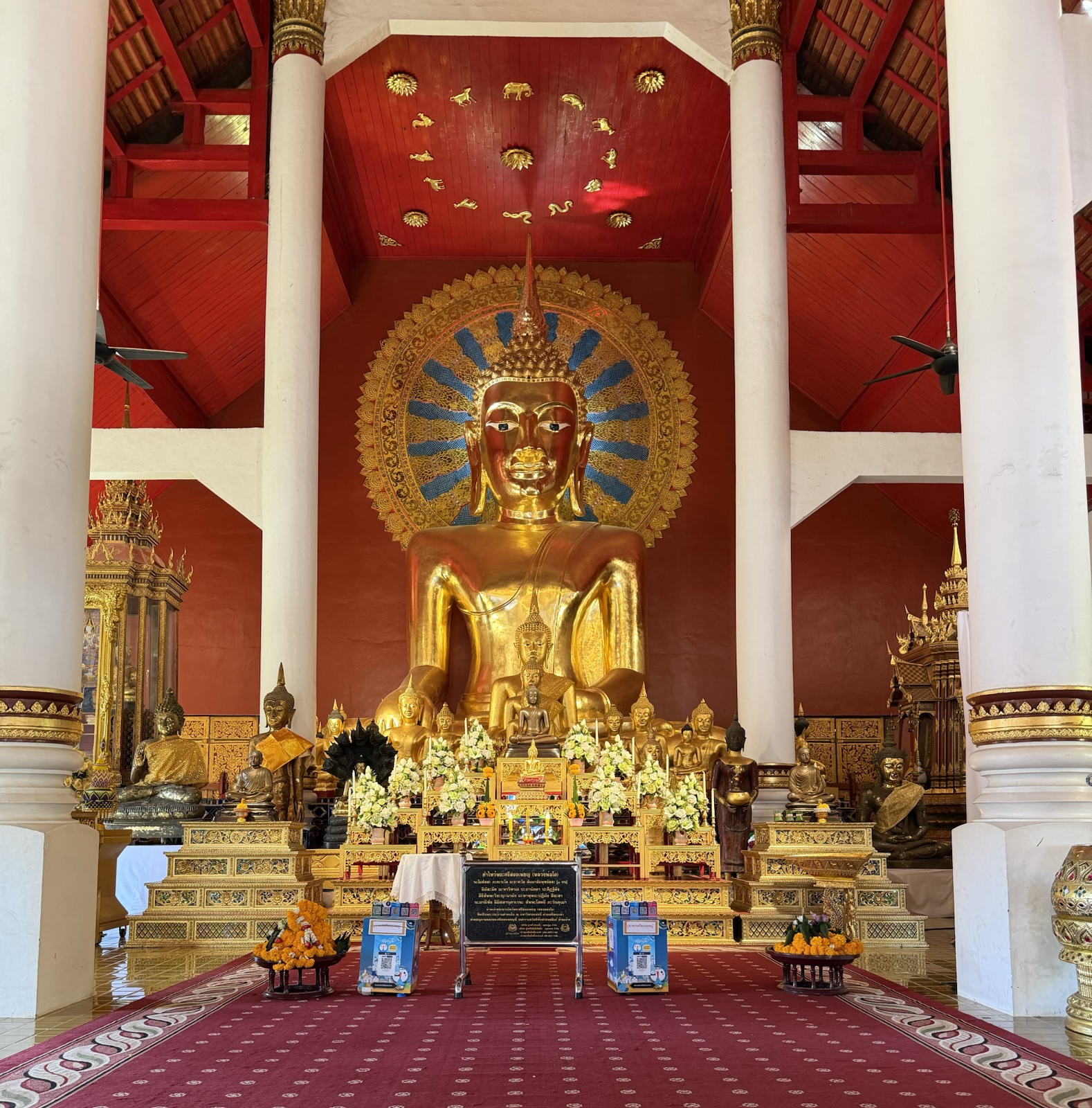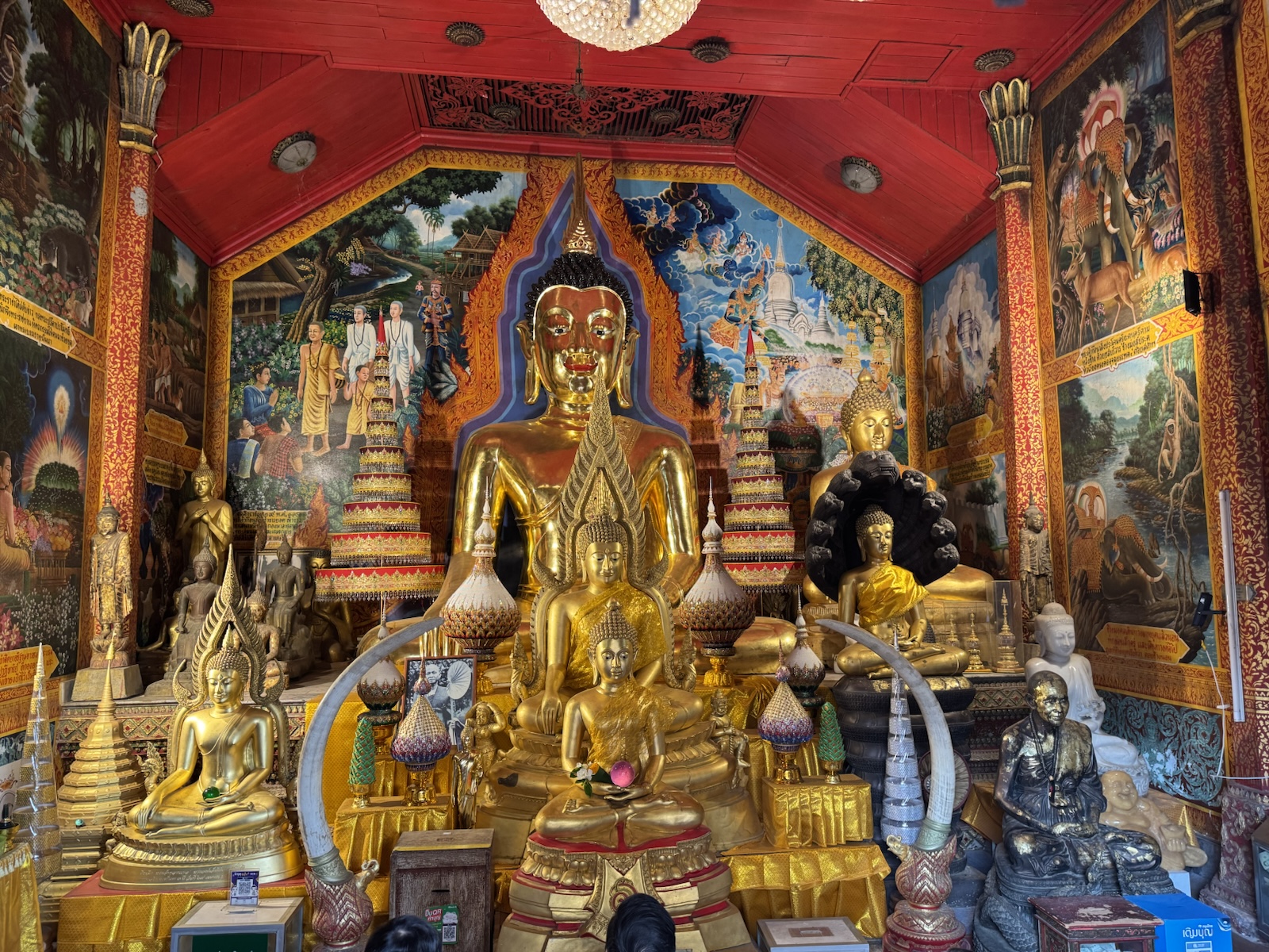 There was a big buddha inside with smaller ones in front of it.