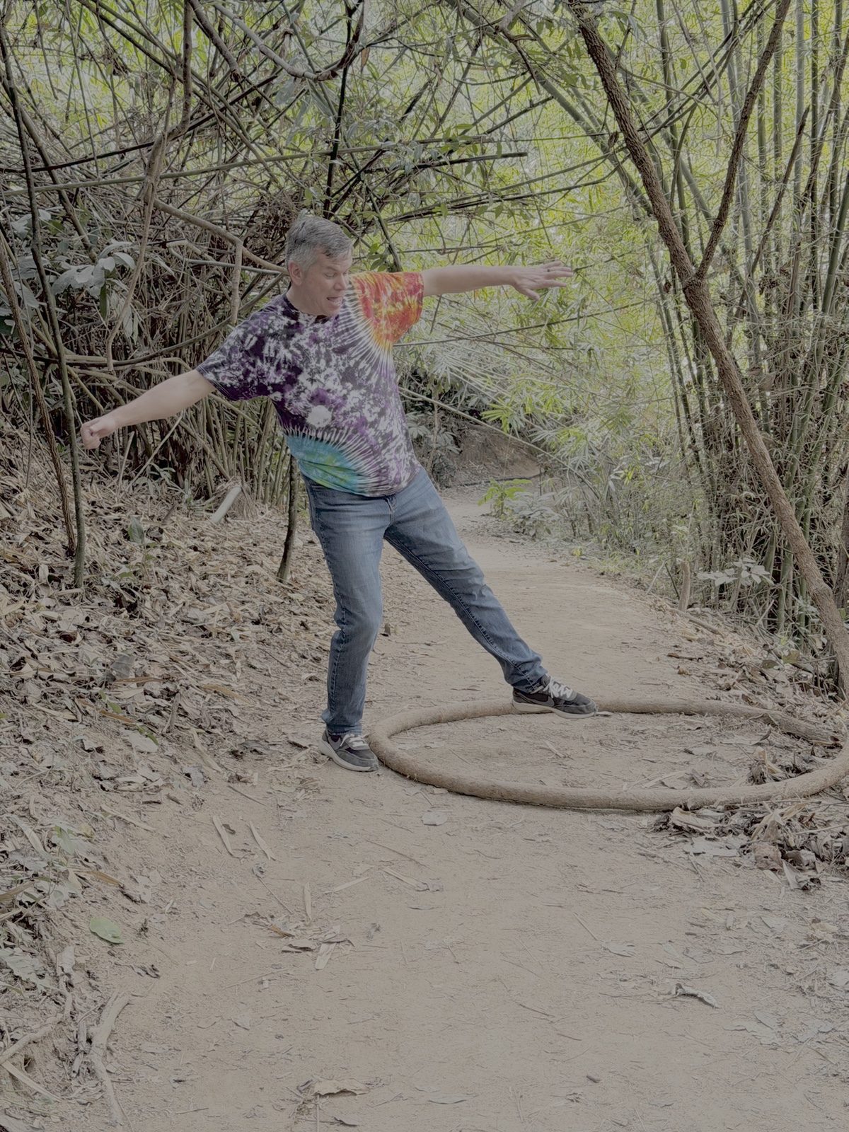A few of us had to head back down the trail at that point to get to a traditional dance performance that night. Along the way, we came across this natural swing.