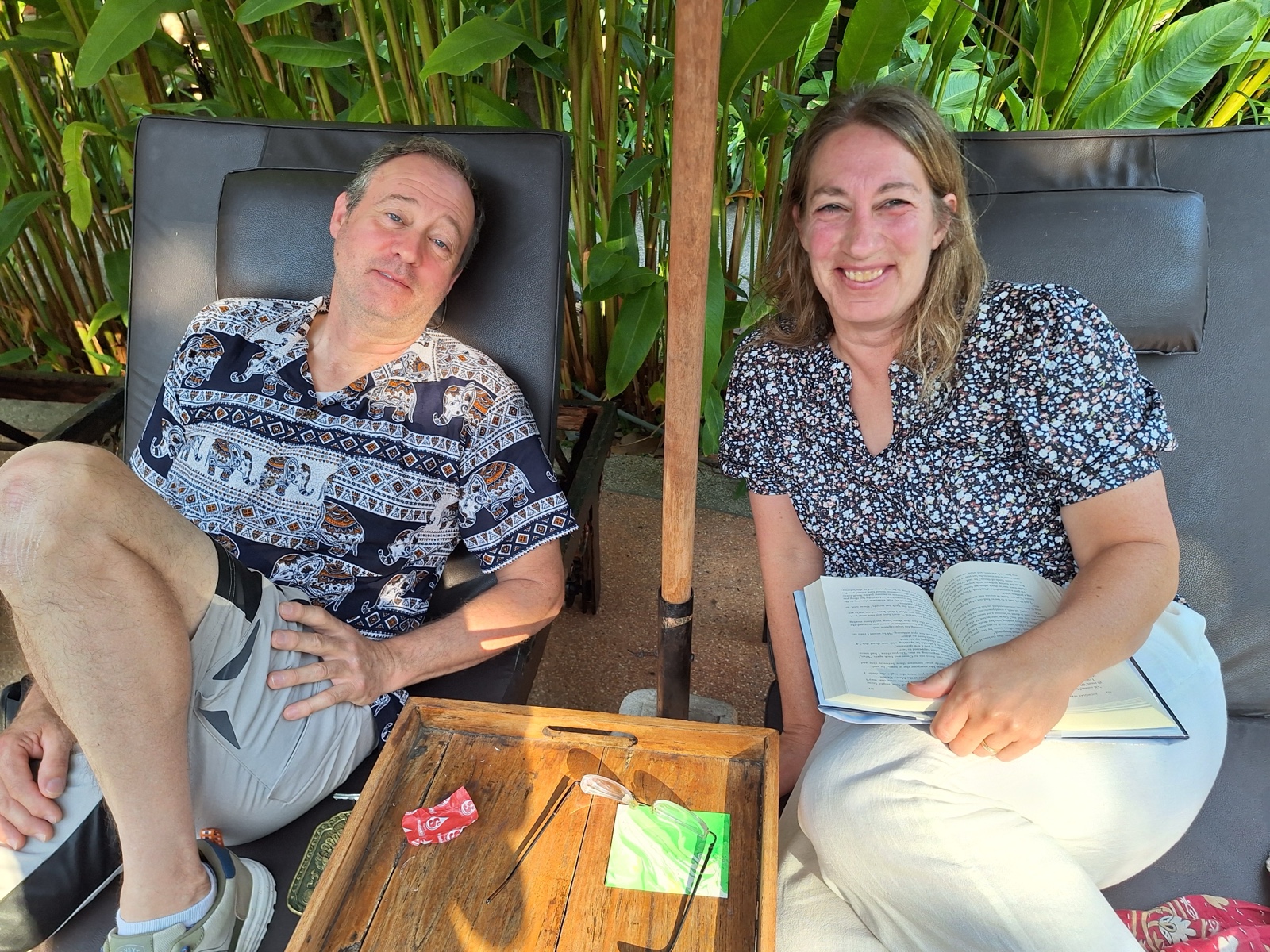 Robert donned his elephant shirt as he and Dayna hung out by the pool.