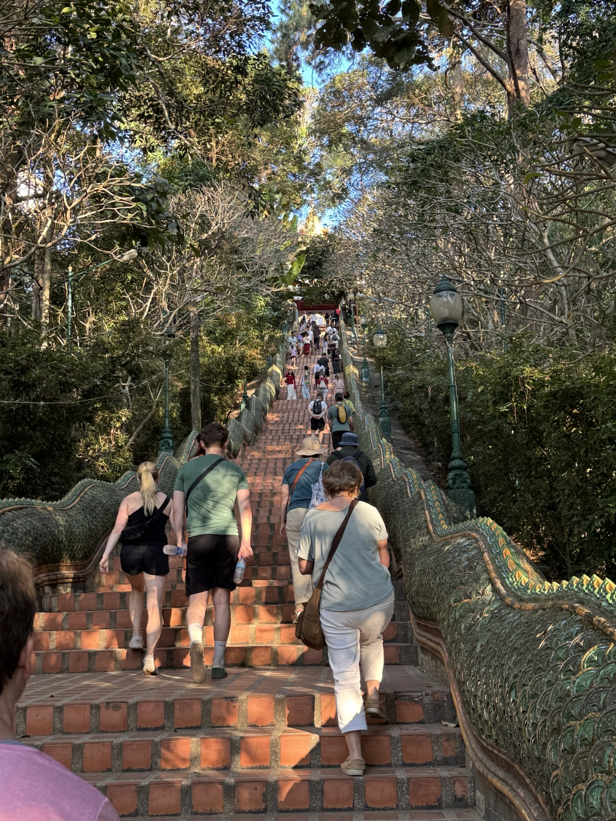 At the top, they were rewarded with views of the amazing Wat Phra That Doi Suthep temple complex. This is the most important temple in Chiang Mai.