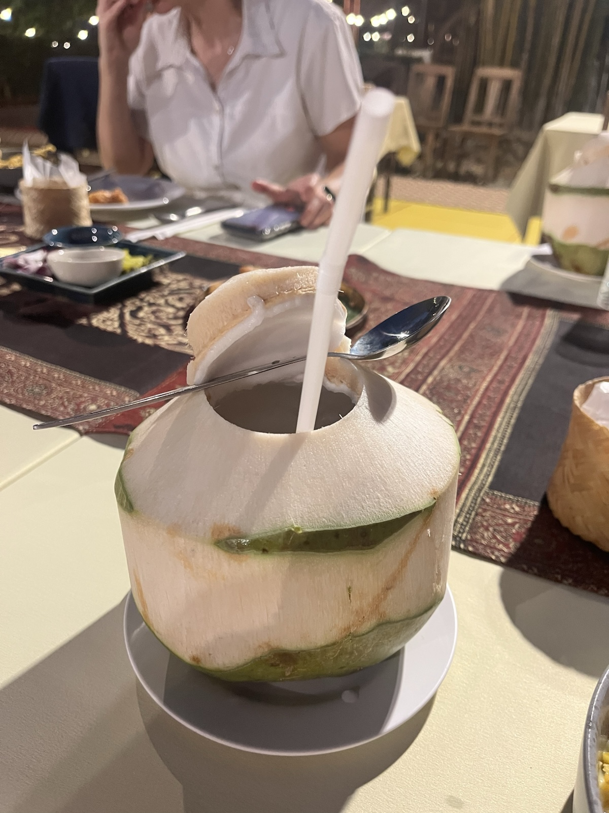 We had drinks served in a coconut.