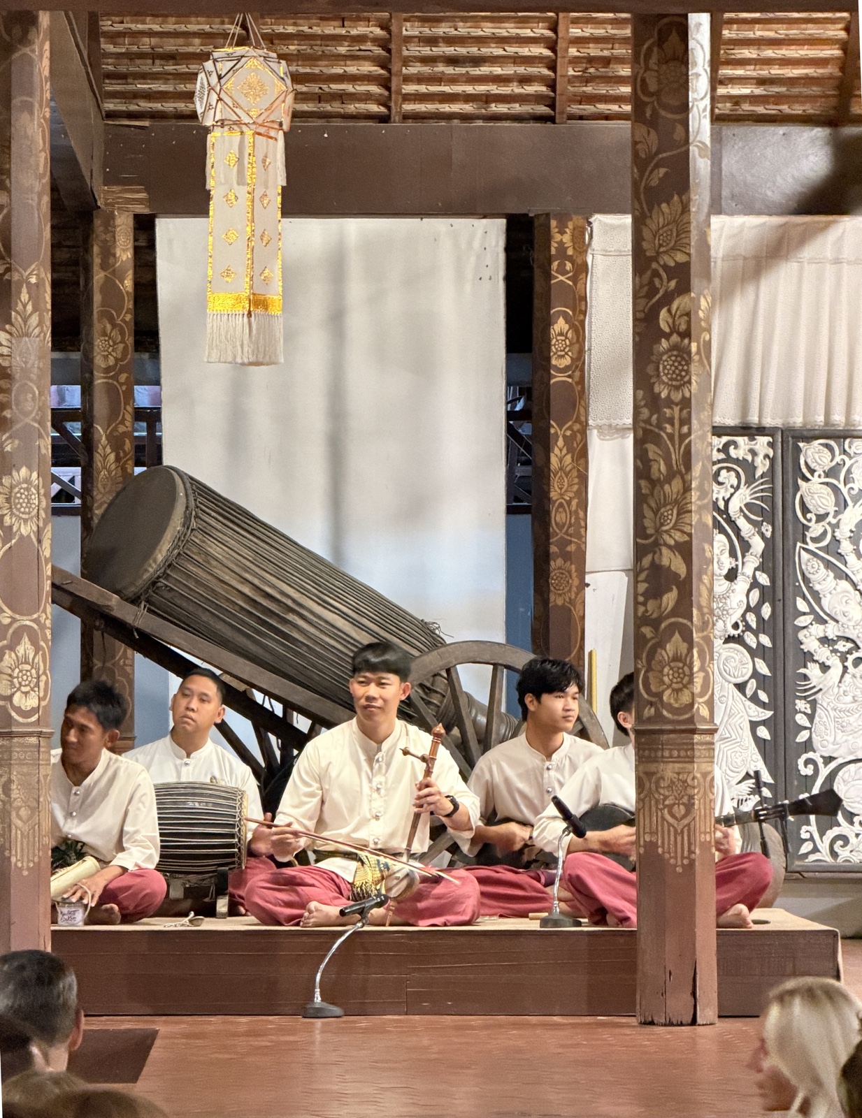 A little band provided traditional music. In the center is a two-stringed instrument called a Salor, which is played with a bow like a violin.