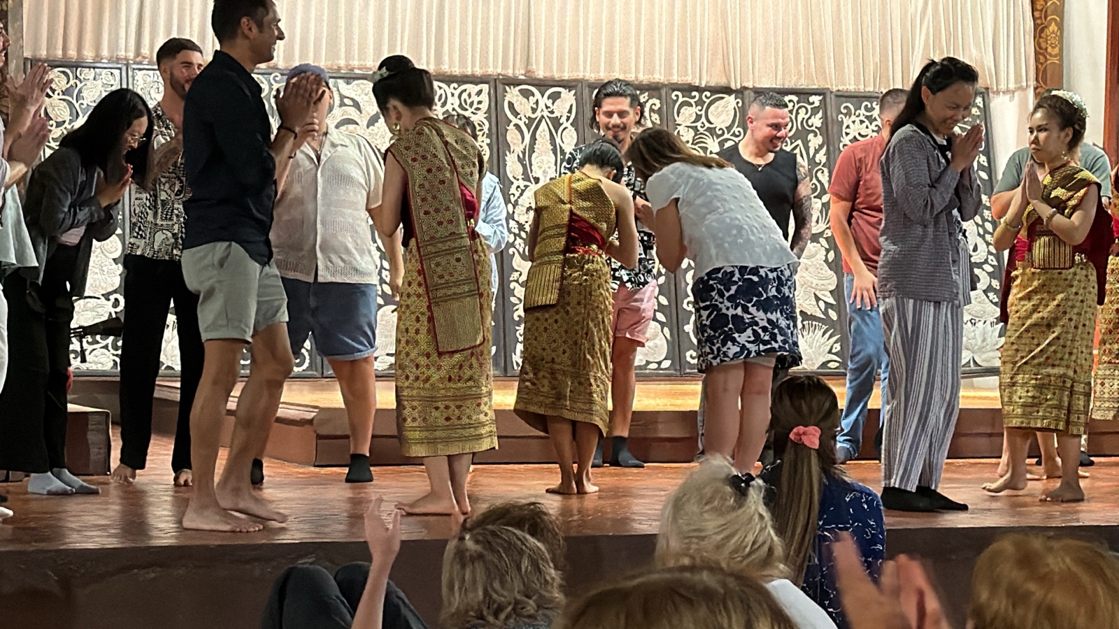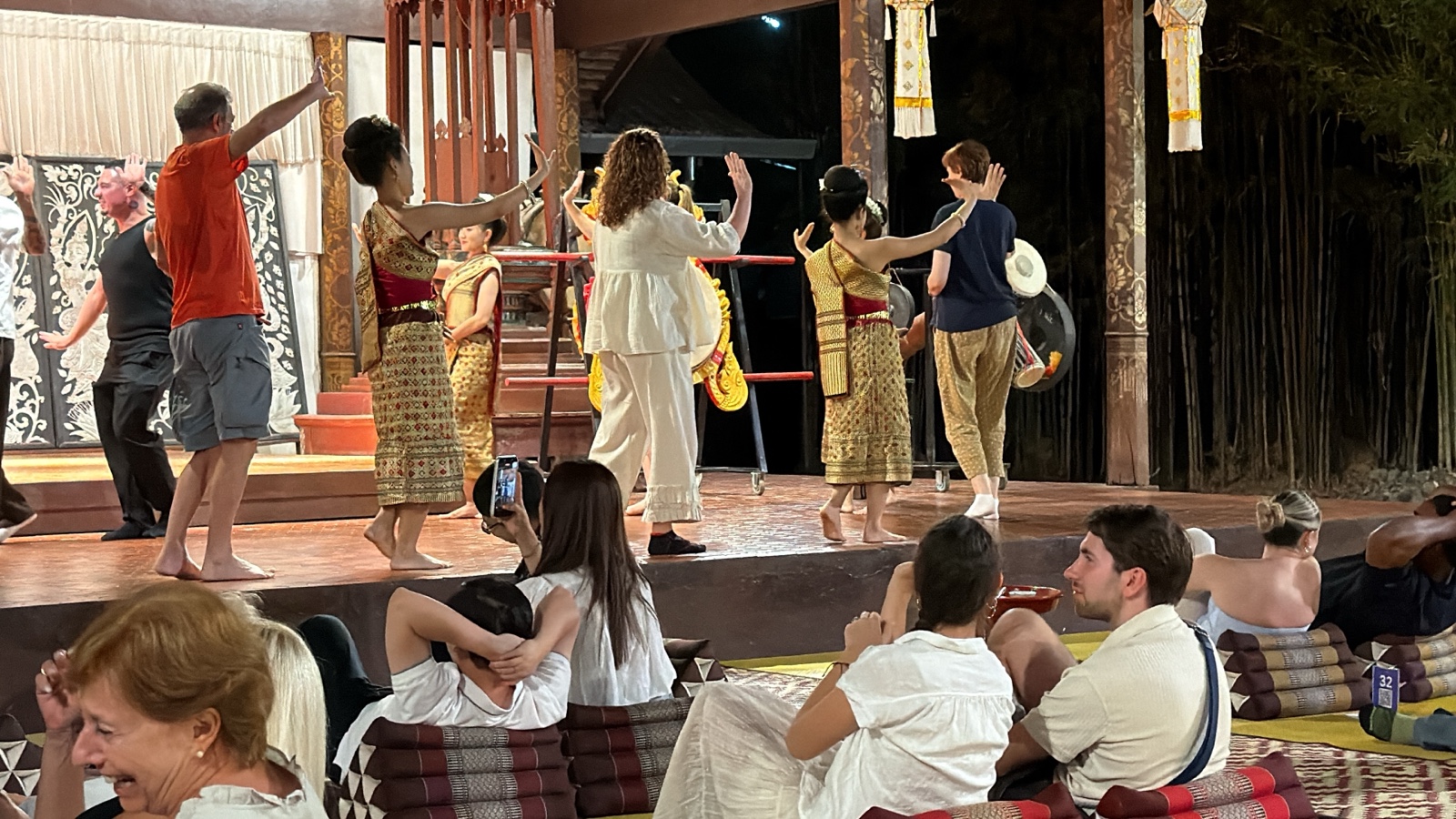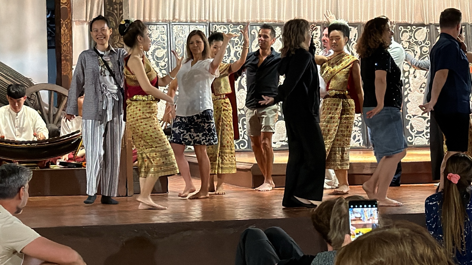 Towards the end, they invited any audience members who wanted to participate to come up on stage to learn a dance. Here is Linette participating in bare feet.