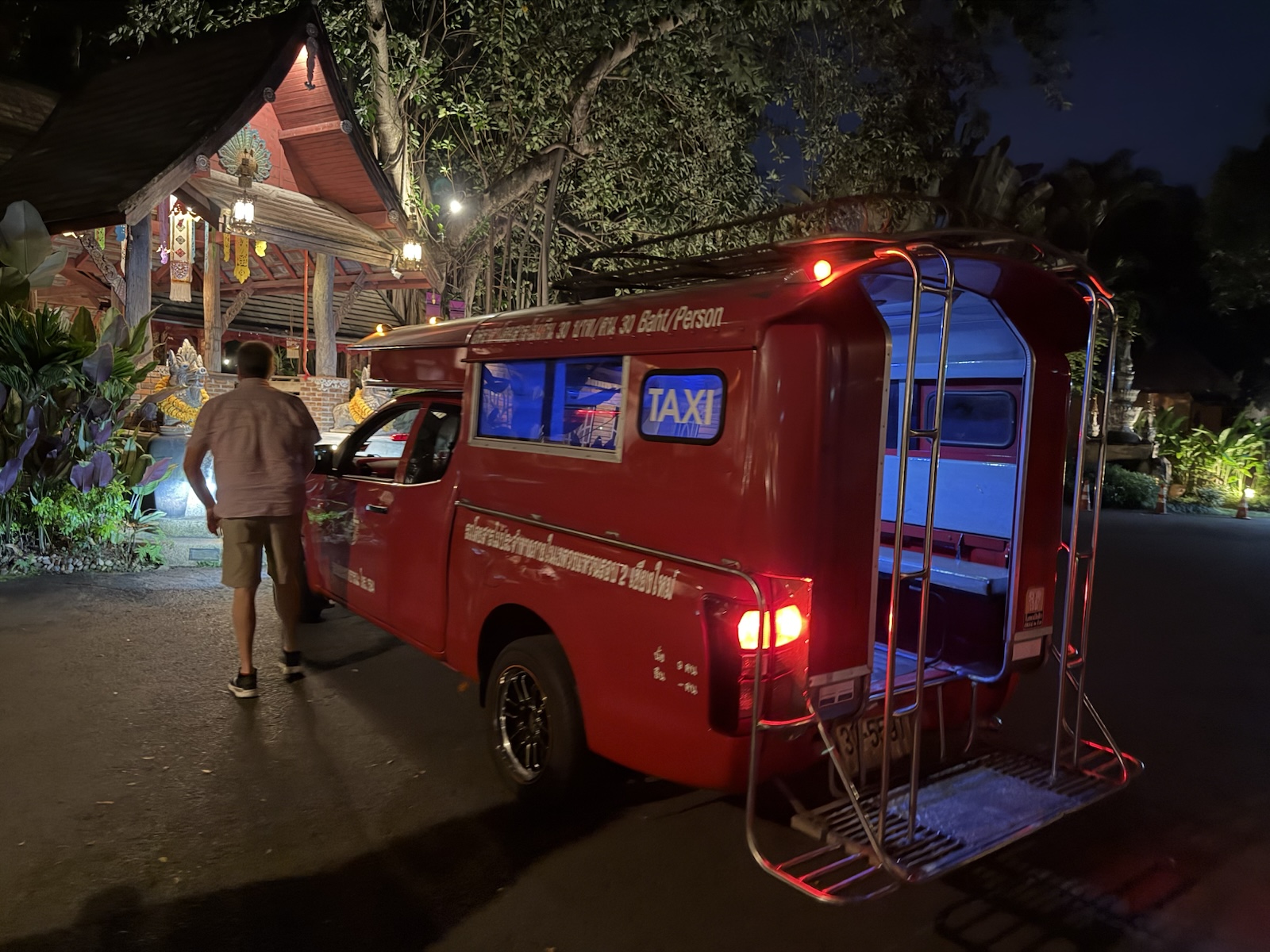 Darren spoke Thai to the driver to arrange for a ride home to our hotel in yet another songthaew ("Two-bench").