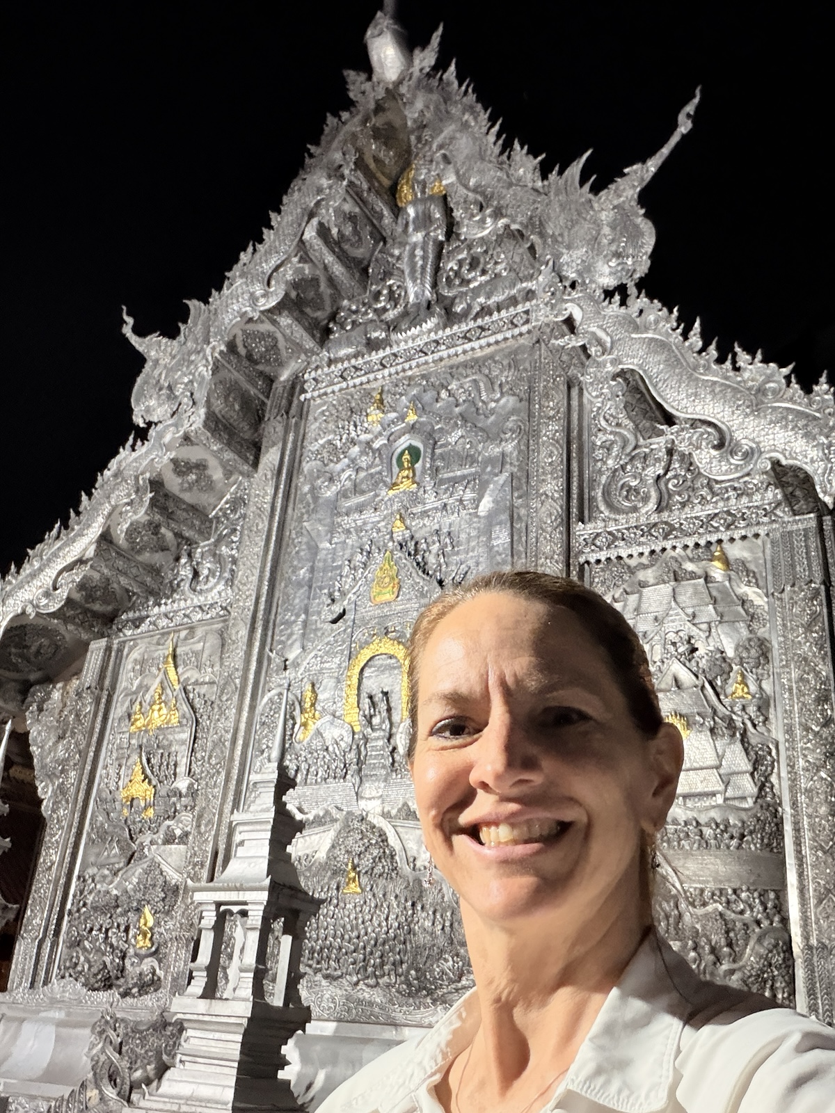 Sharon and Roger went there, too. But after they left the dance performance, they first walked down to see the Silver Temple (Wat Sri Suphan).
