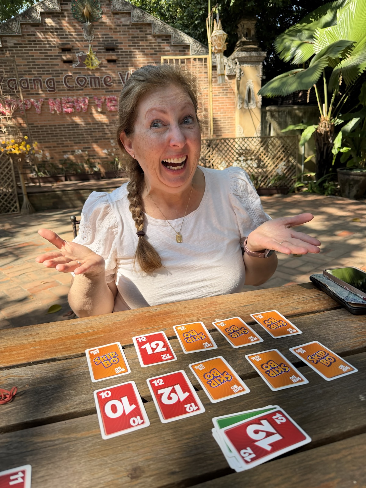 Once we were all packed up, we had some time to spare, so a few of us played a game of "Ripple" with Skip-bo cards.