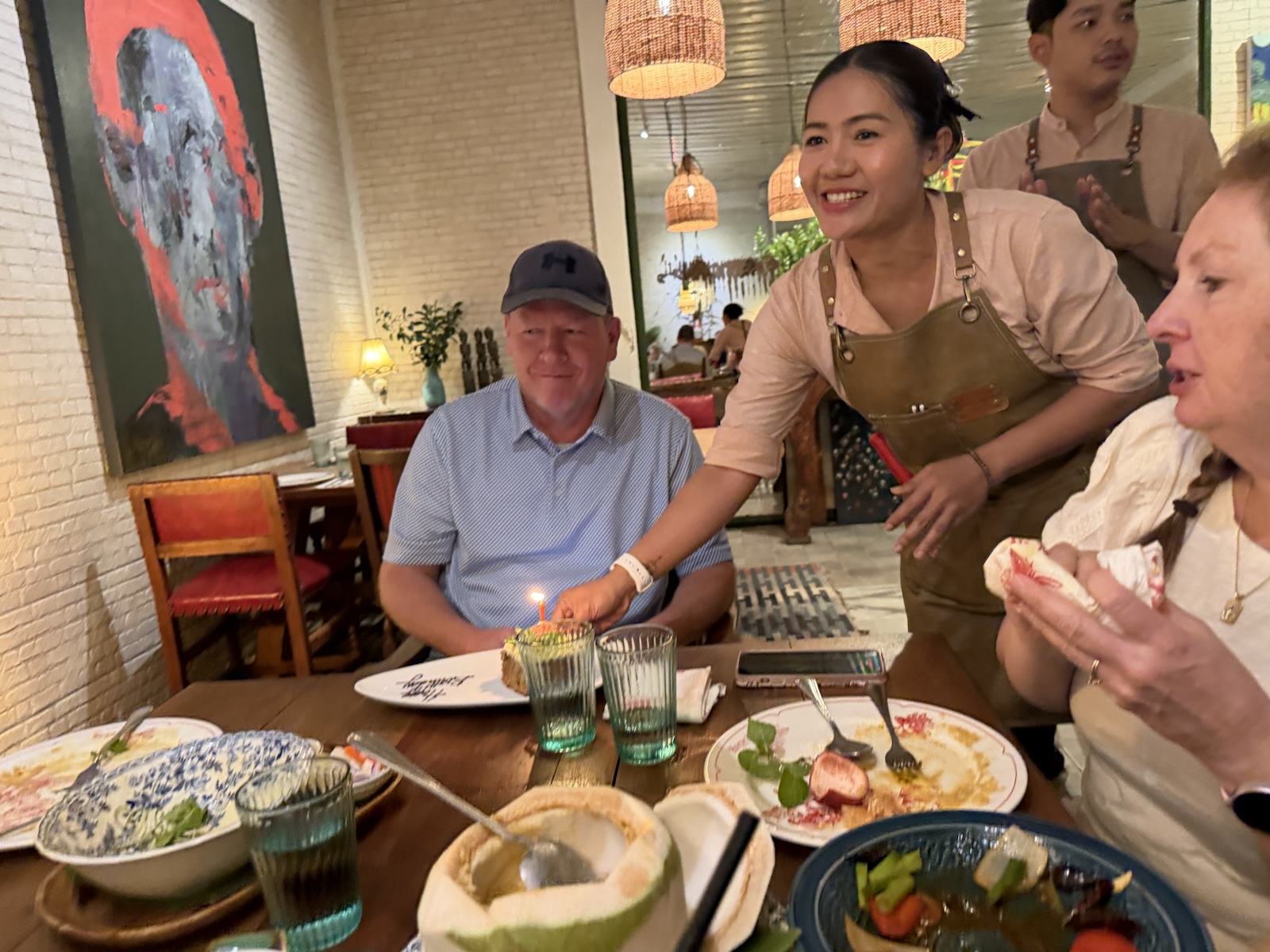 It was Tyler's birthday, so the staff brought him a dessert with a candle and we all sang to him.